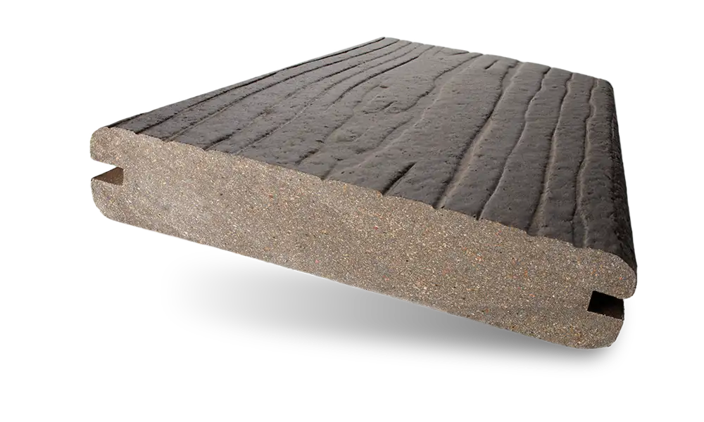 Fiberon Concordia boards feature a multi-tonal surface and embossed grain texture that delivers both natural realism and high-end performance. The product is capped on four sides for superior moisture and UV resistance, providing long-term protection against rot and decay. It comes with a 40-year performance warranty and is a top global choice for sustainable decking, crafted from 94% recycled materials, including reclaimed wood fibers and plastics. Fiberon’s Concordia line offers a premium balance between luxury appearance and affordability, with consistent color variation and deep embossing that elevates modern outdoor spaces while promoting environmentally responsible design practices.