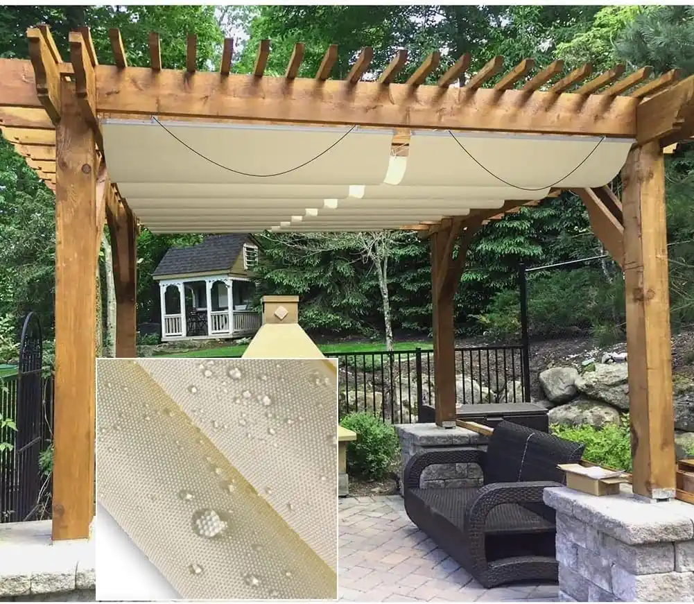 This is a telescopic shade that can be installed over a pergola frame. The wave style adds texture and can be extended or retracted based on the weather. The shading fabric is UV-resistant and allows some ventilation. This product is beneficial if your pergola structure is already in place, but you need a flexible cover option.