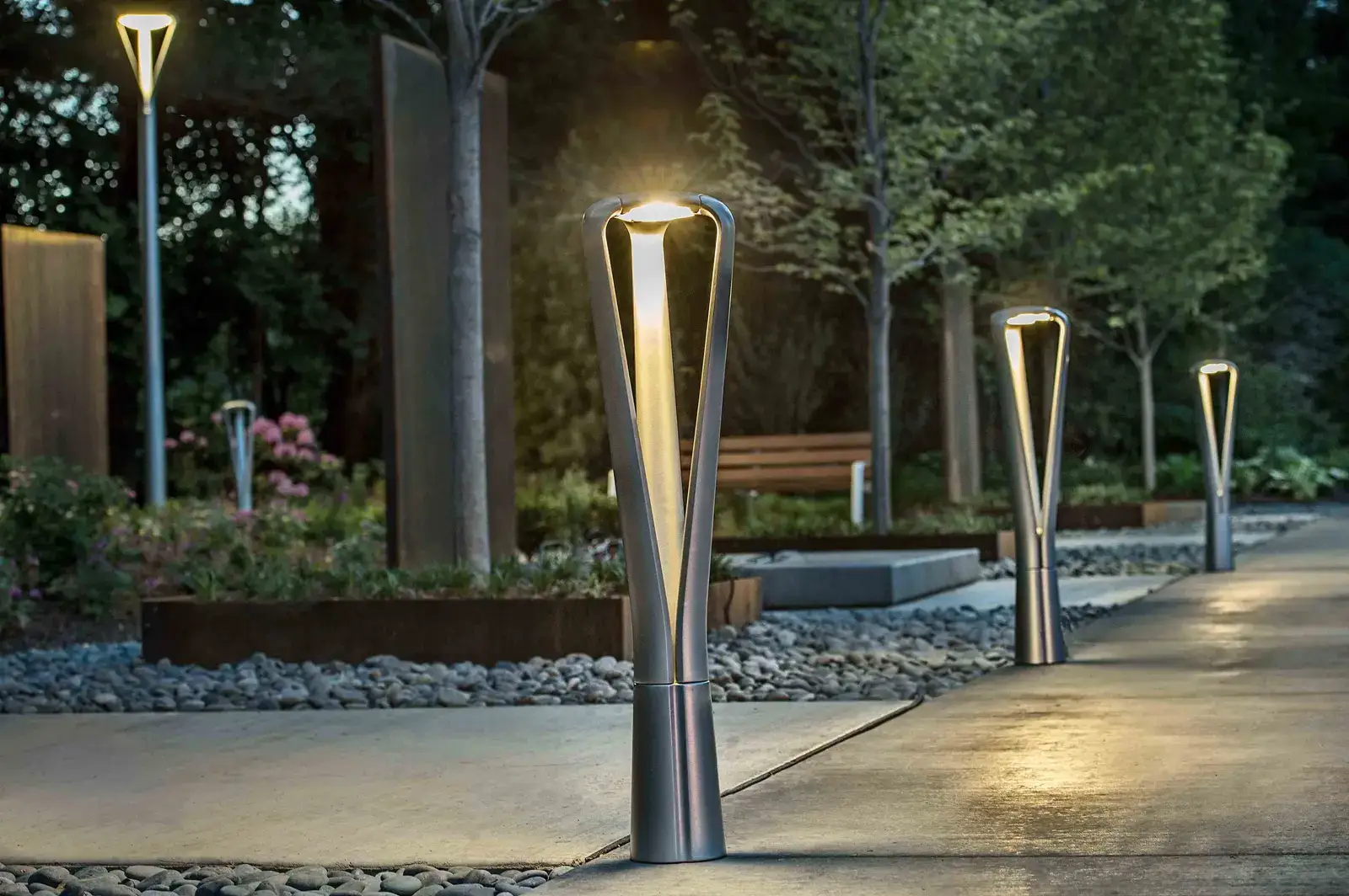 Landscape Forms is a leading manufacturer of outdoor lighting, benches, and site furnishings. Their lighting systems are integral to modern design, illuminating pathways, highlighting architectural features, and creating a warm nighttime ambiance.