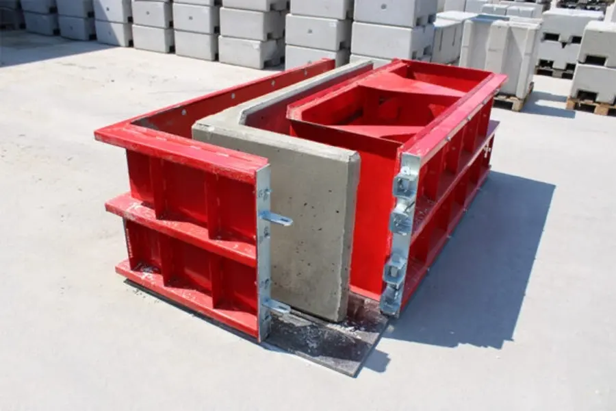 This is an L-shaped precast concrete block used in retaining wall corners or as modular retaining elements.