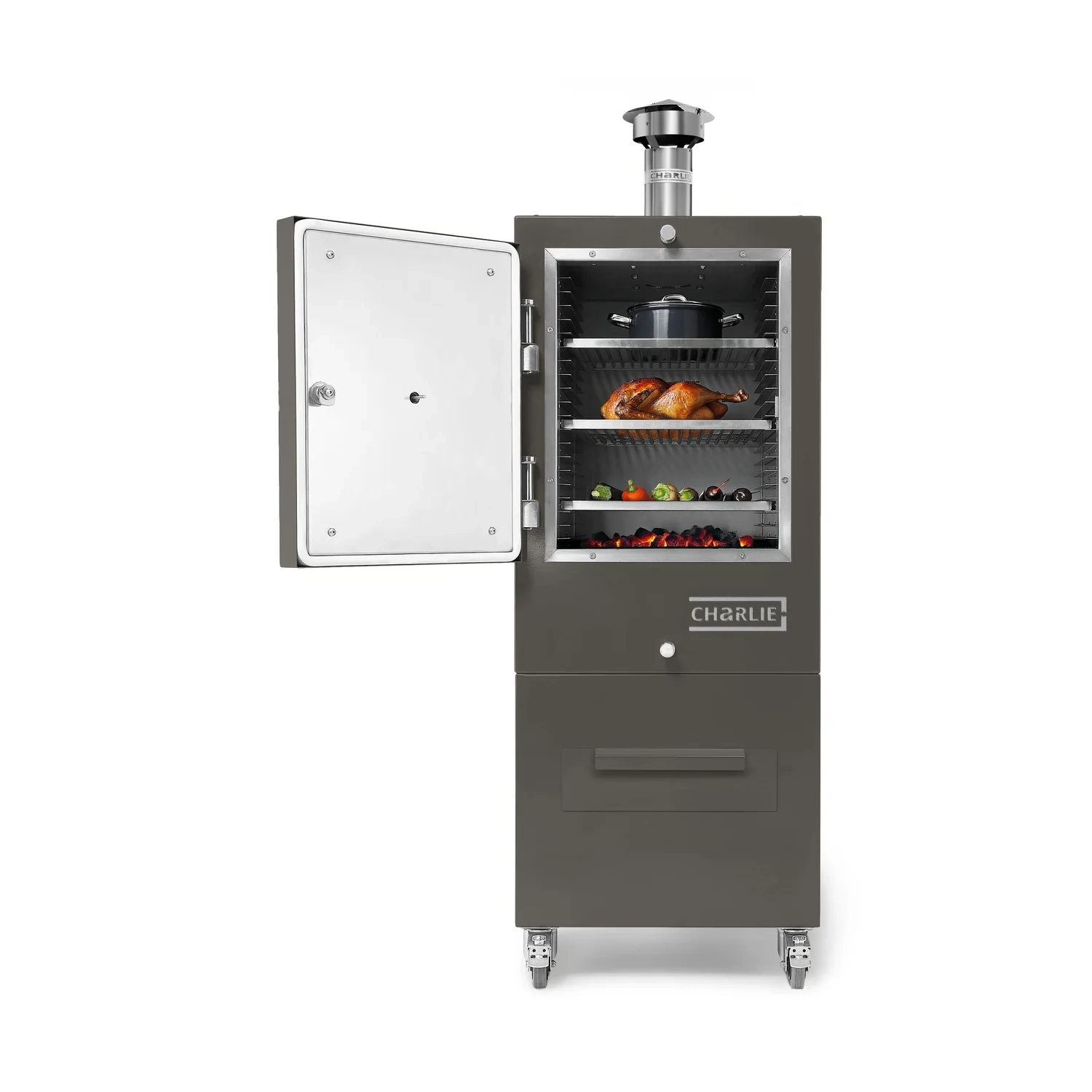 The Charlie Oven is a high-end outdoor charcoal oven built for both performance and aesthetic appeal. It is constructed with thick steel or insulated walls, designed to retain high heat for baking or roasting. Its design is meant for built-in installations in outdoor kitchens, ostonestucco enclosures, stone countertops, and integrated chimneys/flues. The Charlie Oven often has modular add-ons (storage, prep surfaces, weather protection) so you can build around it.