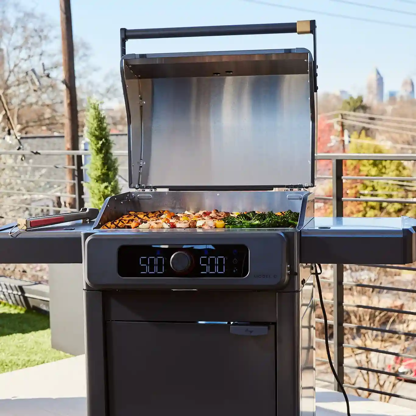 This Current Model G Dual Zone Smart Electric Grill is a high-precision, smart electric grill suited for built-in applications. It offers a wide temperature range (around 200 °F to 700 °F), dual-zone grill surfaces so you can sear high heat on one side and do slower cooking on the other. It includes built-in probes and digital control panels, often with app / Bluetooth capabilities for temperature alerting and cooking guidance.